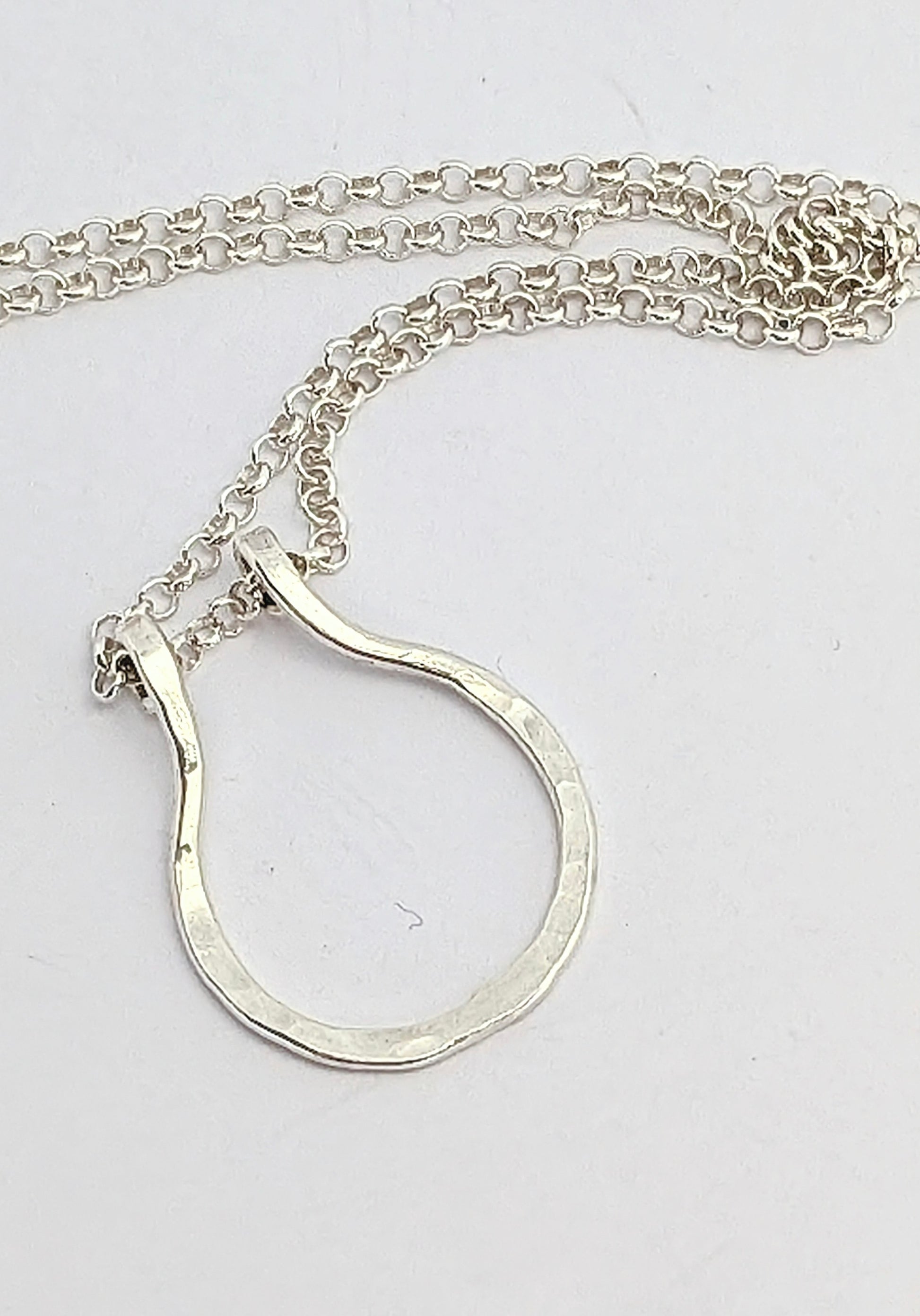 Its simple mechanism means you can wear it with your rings on it while working or as a stand-alone pendant when not.